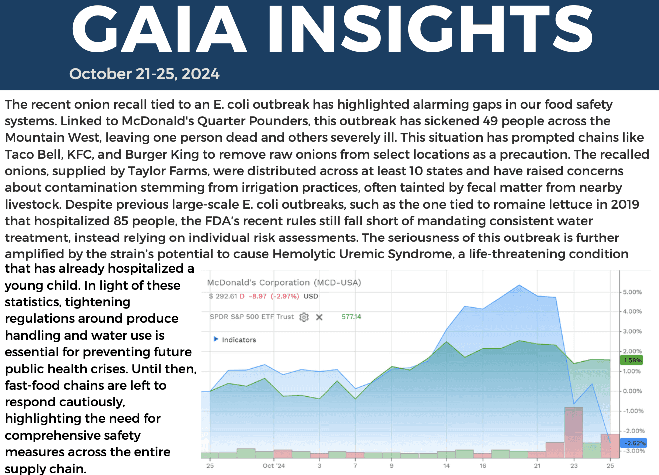 The recent onion recall tied to an E. coli outbreak has highlighted alarming gaps in our food safety systems. Linked to McDonald's Quarter Pounders, this outbreak has sickened 49 people across the Mountain West, leaving one person dead and others severely ill. This situation has prompted chains like Taco Bell, KFC, and Burger King to remove raw onions from select locations as a precaution. The recalled onions, supplied by Taylor Farms, were distributed across at least 10 states and have raised concerns about contamination stemming from irrigation practices, often tainted by fecal matter from nearby livestock. Despite previous large-scale E. coli outbreaks, such as the one tied to romaine lettuce in 2019 that hospitalized 85 people, the FDA’s recent rules still fall short of mandating consistent water treatment, instead relying on individual risk assessments. The seriousness of this outbreak is further amplified by the strain’s potential to cause Hemolytic Uremic Syndrome, a life-threatening condition that has already hospitalized a young child. In light of these statistics, tightening regulations around produce handling and water use is essential for preventing future public health crises. Until then, fast-food chains are left to respond cautiously, highlighting the need for comprehensive safety measures across the entire supply chain.