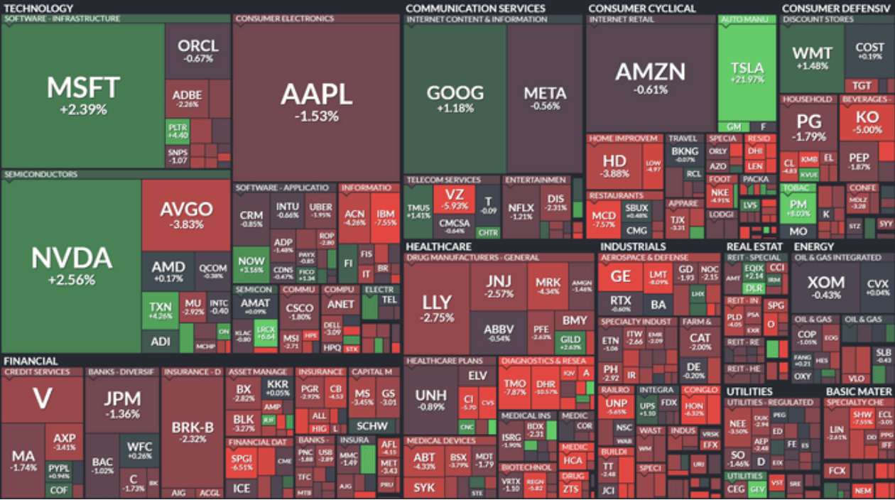 This week, U.S. equities were mixed. The Dow rose by +2.68%, while the S&P 500 and Nasdaq saw more modest gains of +0.96% and +0.16%, respectively. The Russell 2000 led with a +2.99% increase. This marked a break in the S&P 500’s six- week streak of gains, though the Nasdaq extended its streak to seven weeks, fueled by tech stocks. Tesla led outperformers, up +22%, and strong sectors included tech, EVs, and ag chemicals, while homebuilders, retail, and financials lagged Treasuries were weaker across the curve, and the dollar index gained +0.8%, primarily driven by a stronger yen. Gold rose +0.9% to a fresh record high, while WTI crude climbed +4.5%.