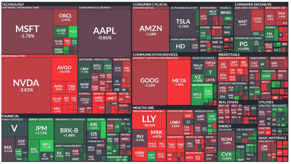 AMAT (-9.2%): Strong Q4 earnings, but weak Q1 revenue guidance disappointed investors.